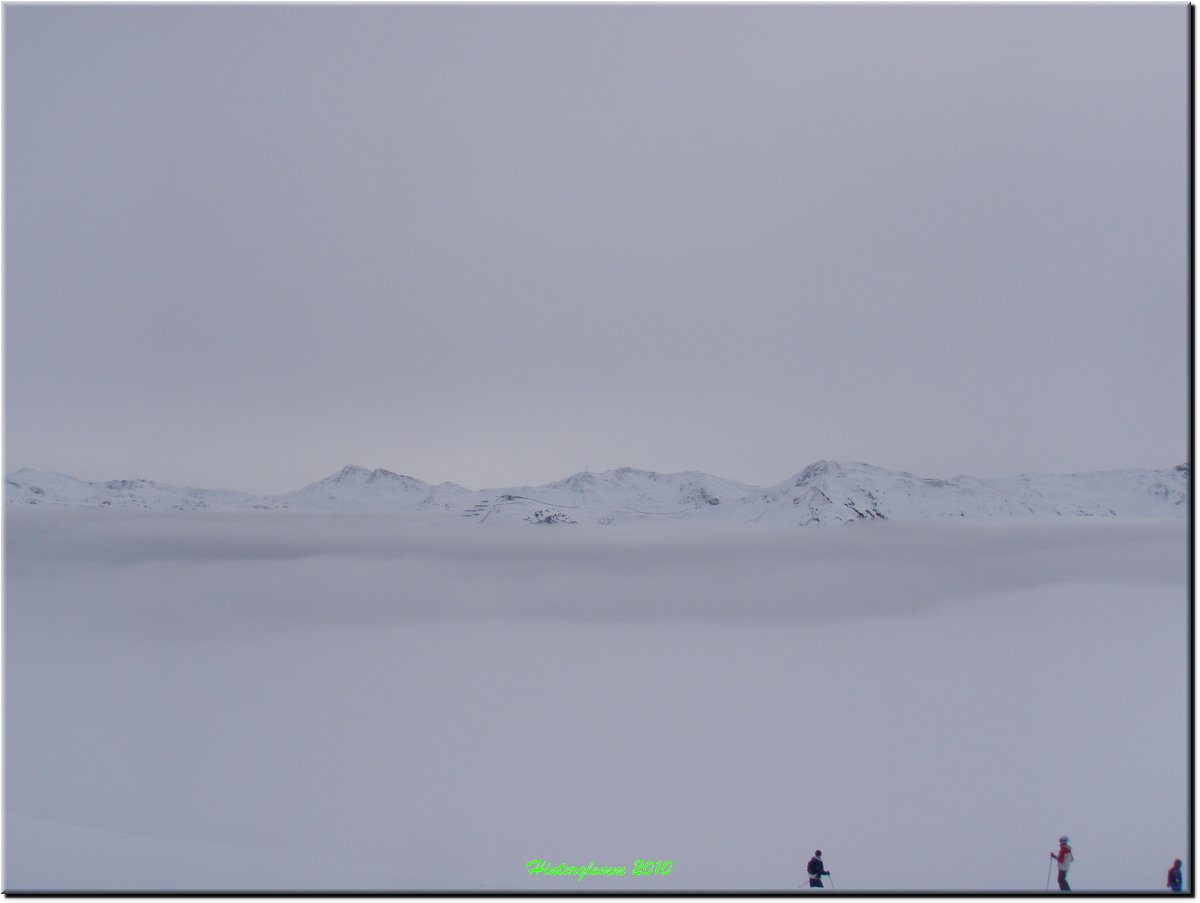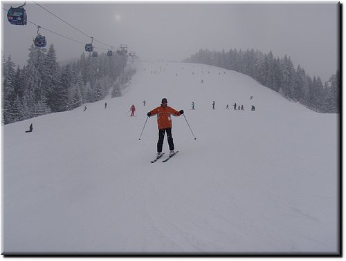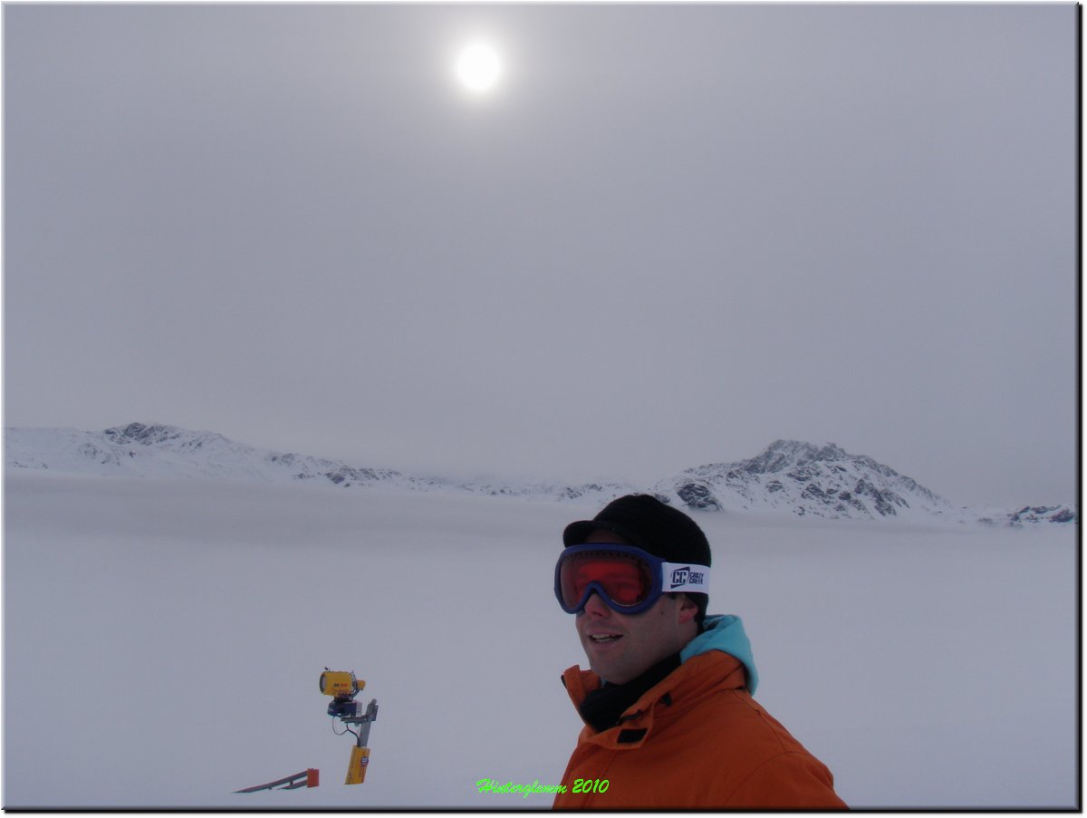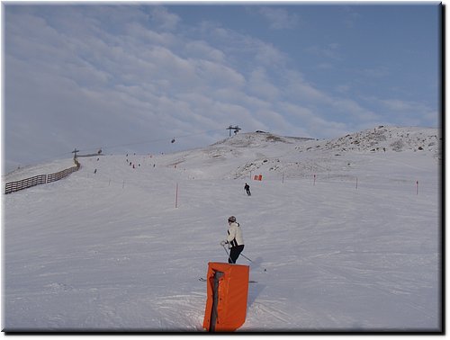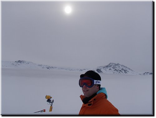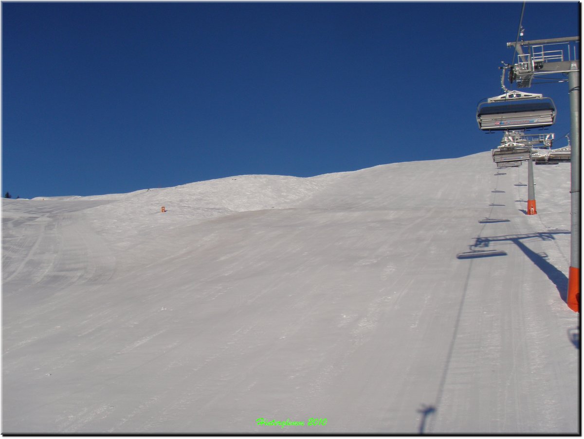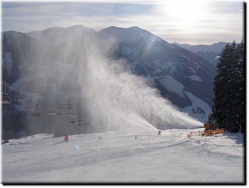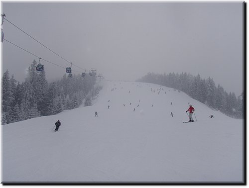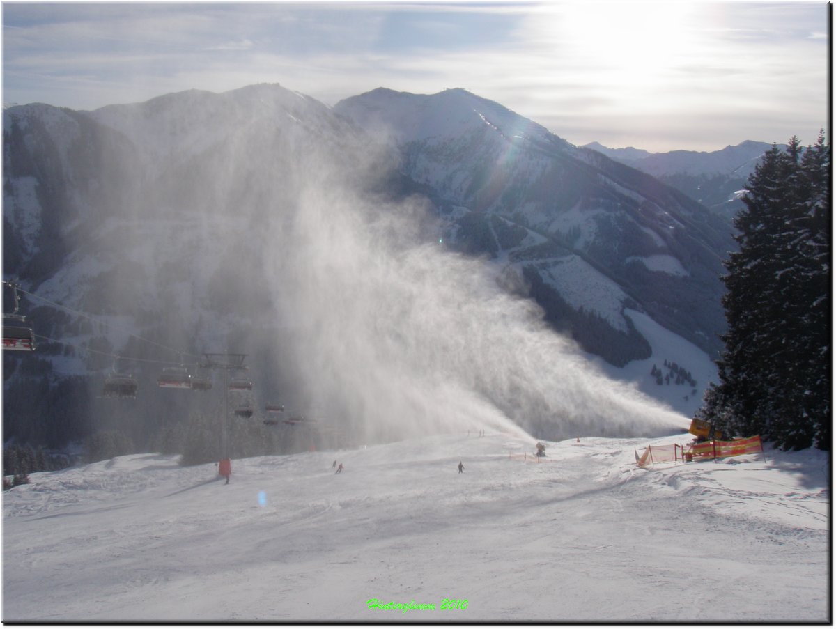 Het was vrij zonnig maar, mede door de vele sneeuwkanonnen, hing er wat nevel.