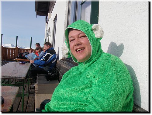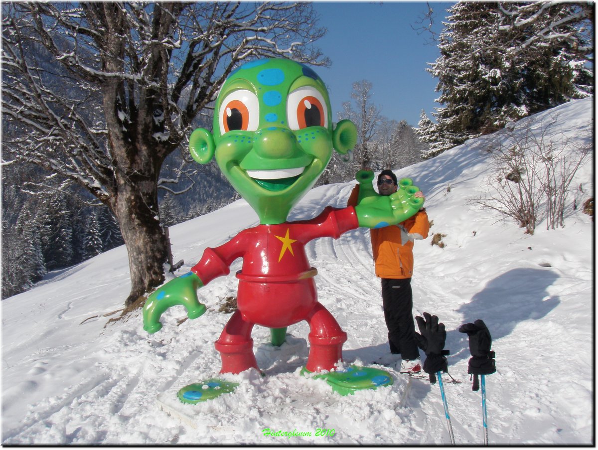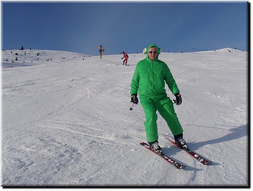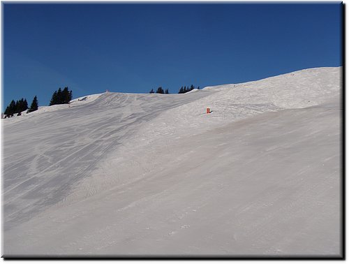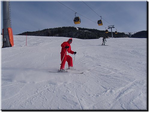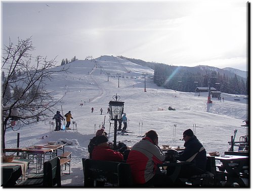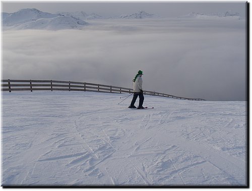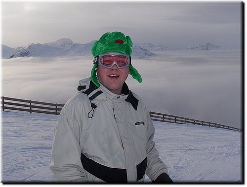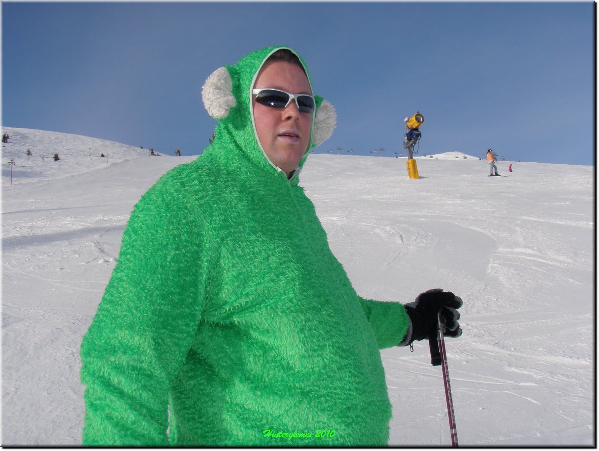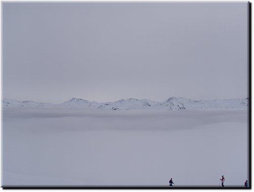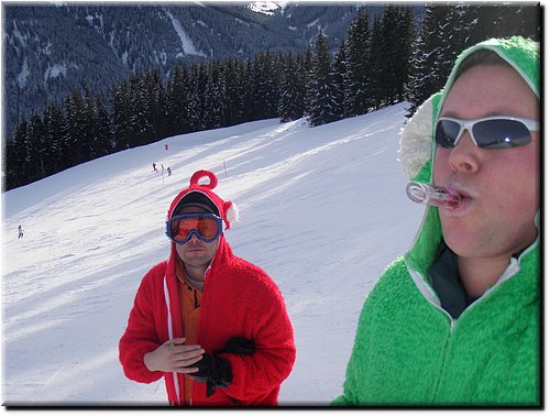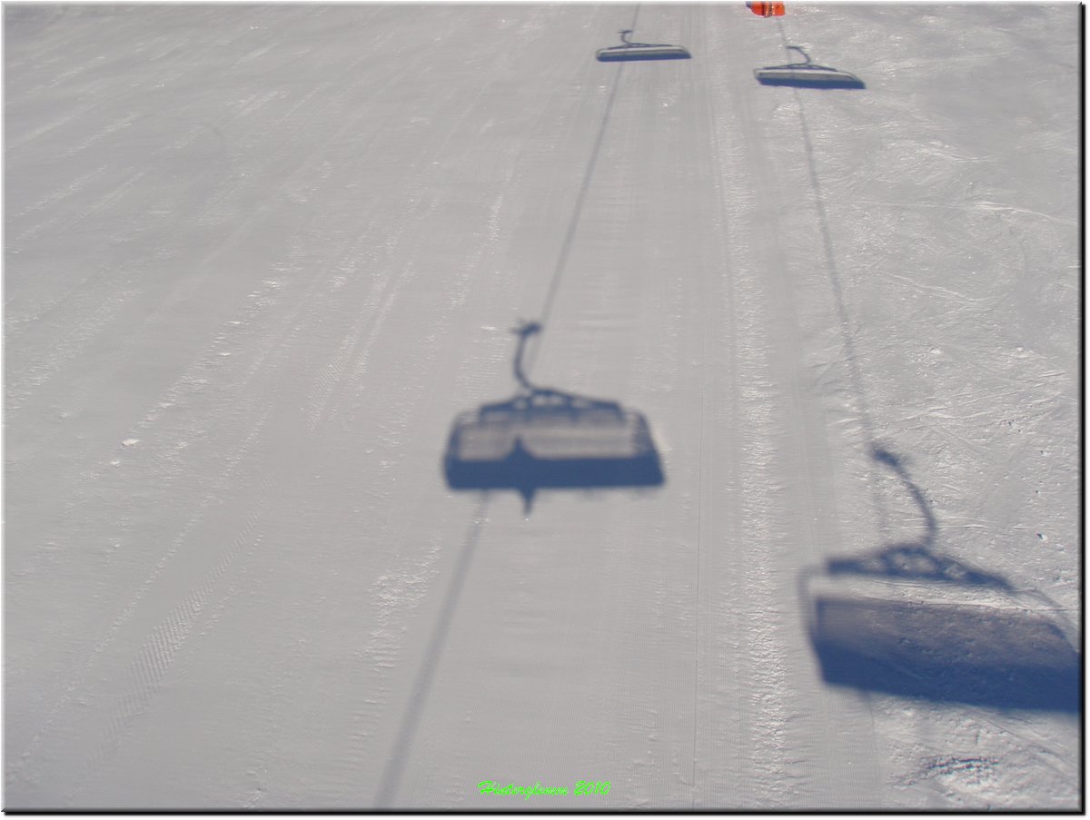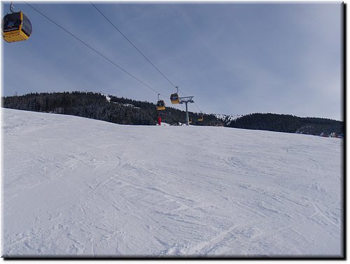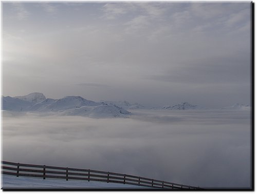Het was vrij zonnig maar, mede door de vele sneeuwkanonnen, hing er wat nevel.