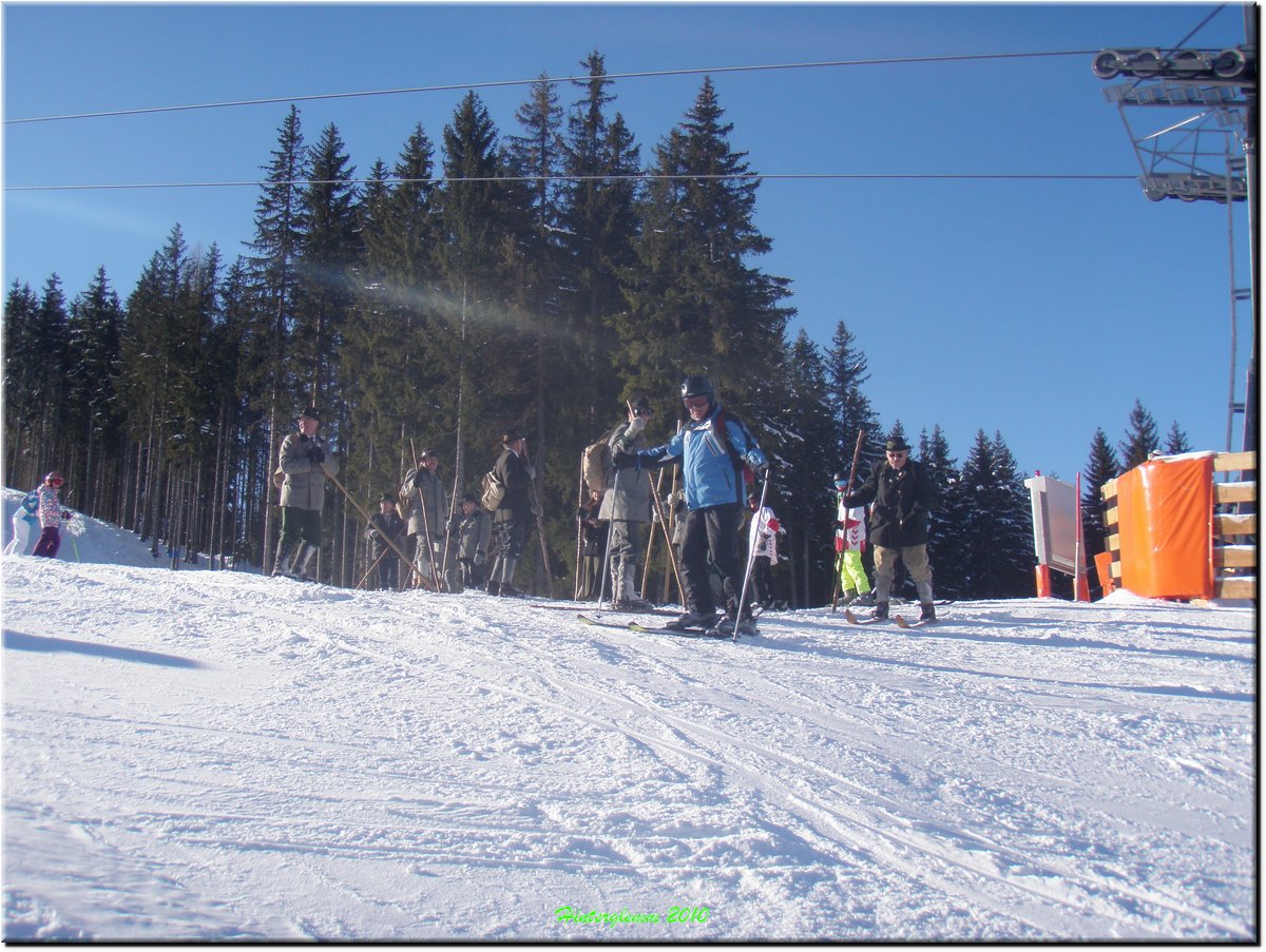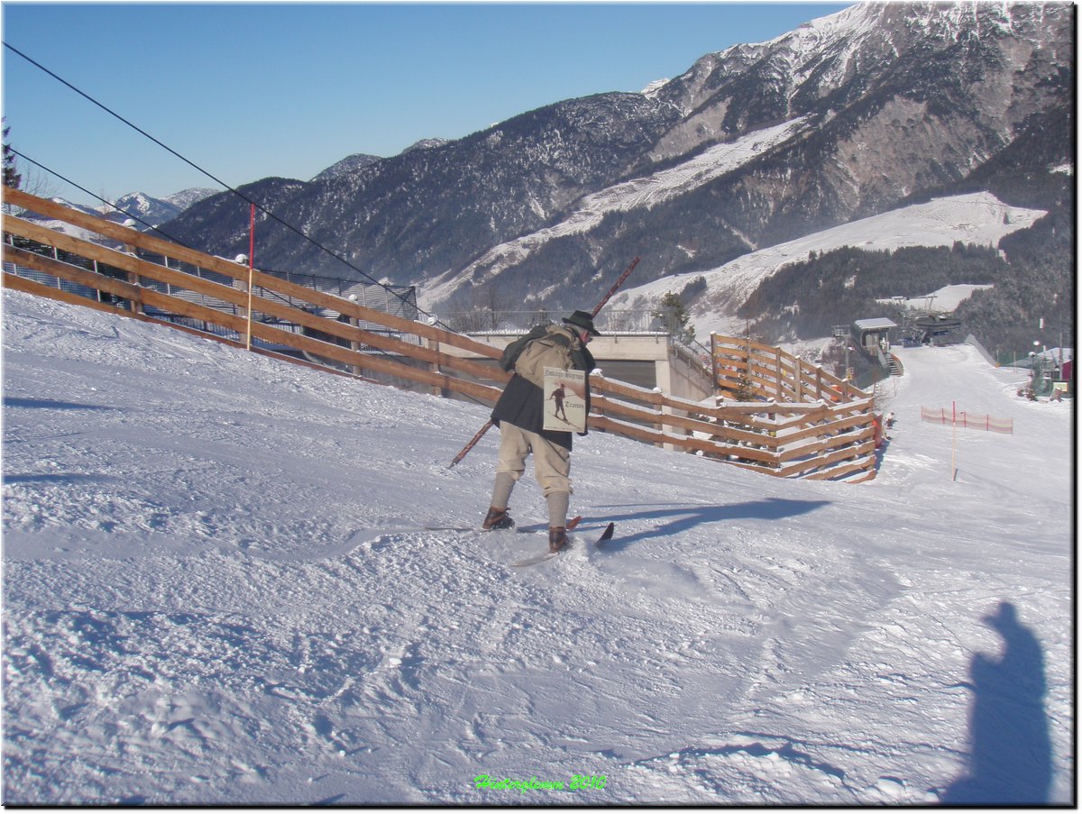 op ski's uit de vorige eeuw.
