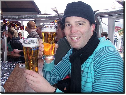 Voor het eerste biertje in Oostenrijk was de Big Foot Saletti the place to be.