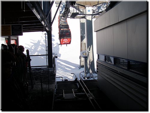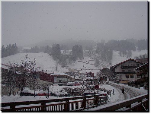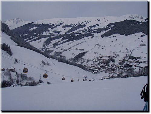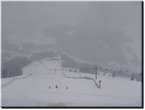 Het sneeuwde de hele dag, maar t zicht was goed. De nieuwe Almbahn in Leogang.