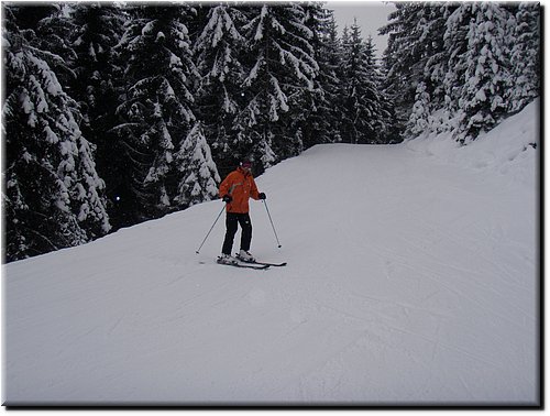 De volgende ochtend sneeuwde het. Dit was ook wel nodig op sommige pistes.