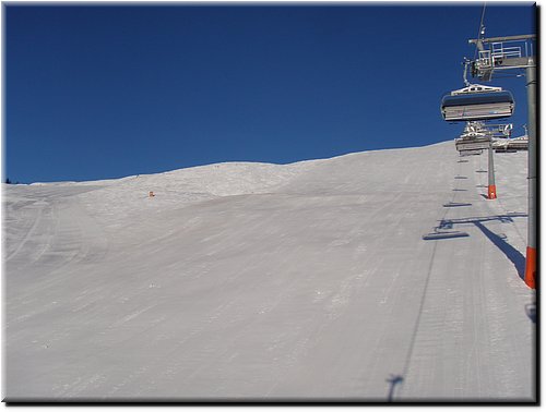 De nieuwe 8 persoons stoeltjeslift in Hinterglemm. Avondpiste vanaf de